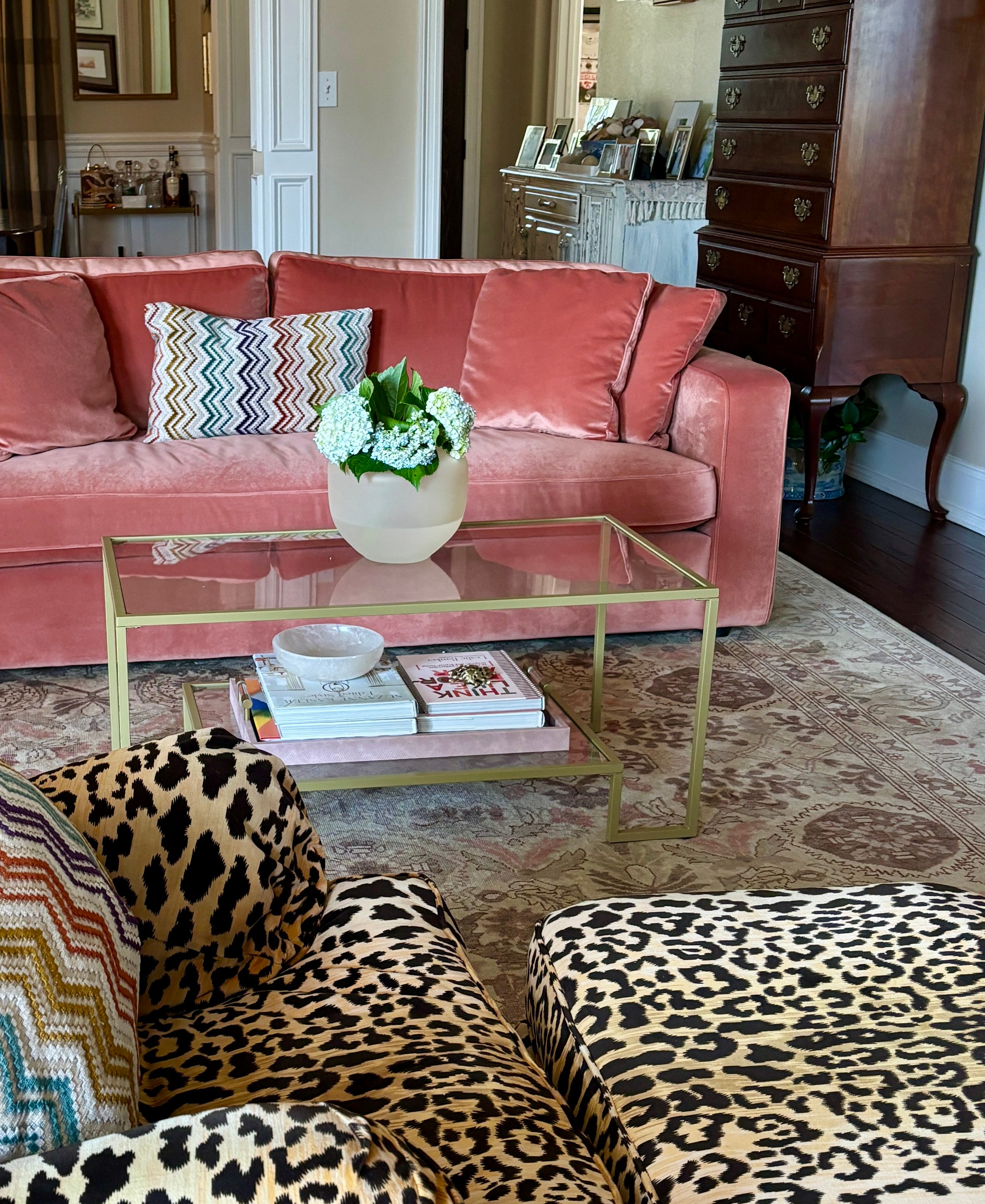The other? Putting it across from a salmon velvet sofa with zero hesitation and even less concern for whether it was “too much.” (Spoiler: it wasn’t.)